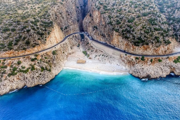 Kalkan-Kaş yolu üzerinde yer alan Kaputaş, turkuaz rengi deniziyle meşhurdur. Kanyon ağzı plajıdır, yani dağların arasından çıkan yer altı sularıyla beslenir. Plaja ulaşmak için, D400 karayolu üzerinde seyahat ederken, plajı işaret eden tabelaları takip etmek yeterlidir. Plajın girişinde yaklaşık 170 basamaklı bir merdiven bulunmaktadır. Merdivenlerden aşağı inerken karşınıza çıkan manzara, bölgenin en çok fotoğraflanan karelerinden biridir. Kaputaş Plajı, Lures Hotel’e yaklaşık 8 kilometre uzaklıktadır. Bu mesafe, araçla ortalama 10 ila 15 dakika süren bir yolculukla kat edilebilir.